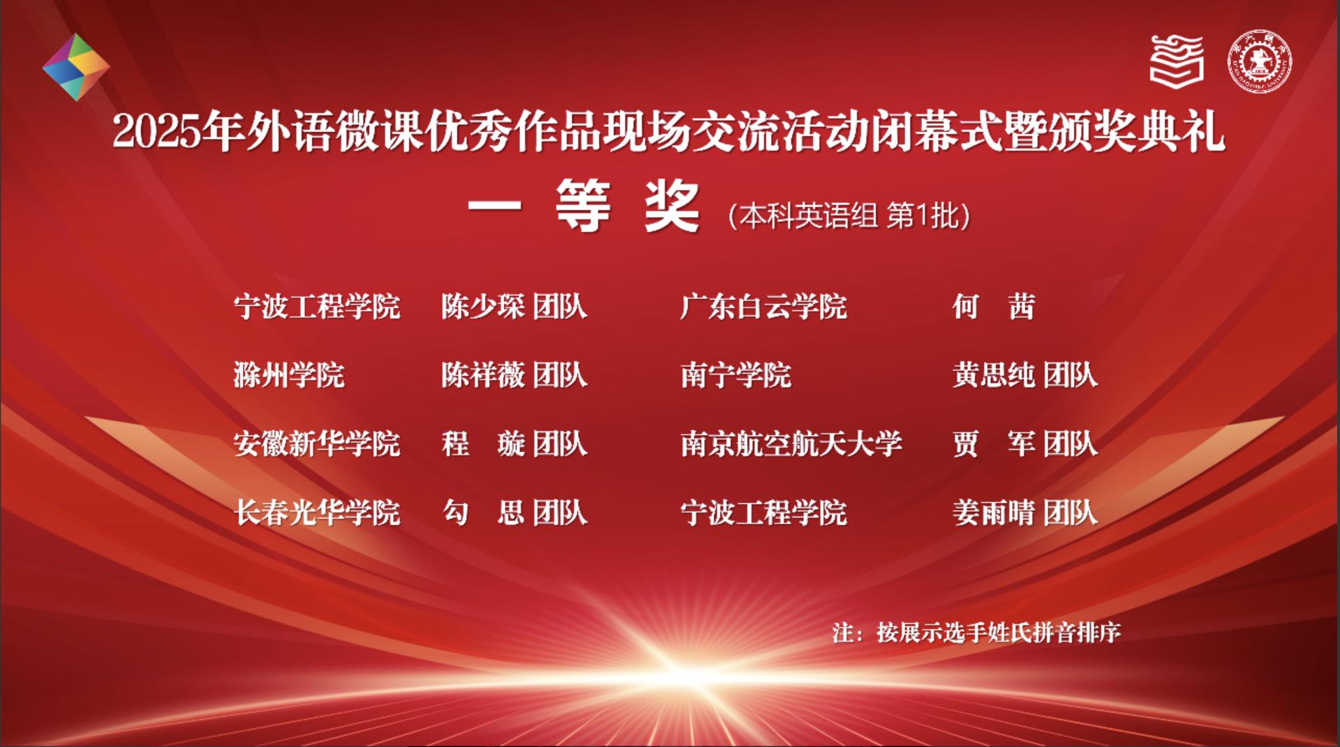 10月26日,由高等教育出版社主办的2025年外语微课优秀作品现场交流活动在陕西西安交通大学圆满落幕。南宁乐天堂fun88集团所属南宁学院教师黄思纯、杨乐、谢立芳、宁丽玫团队凭借作品Travel Video Opening—Captivating Your Audiences in Seconds,从全国66件入围现场交流的优秀作品中脱颖而出,斩获全国一等奖。