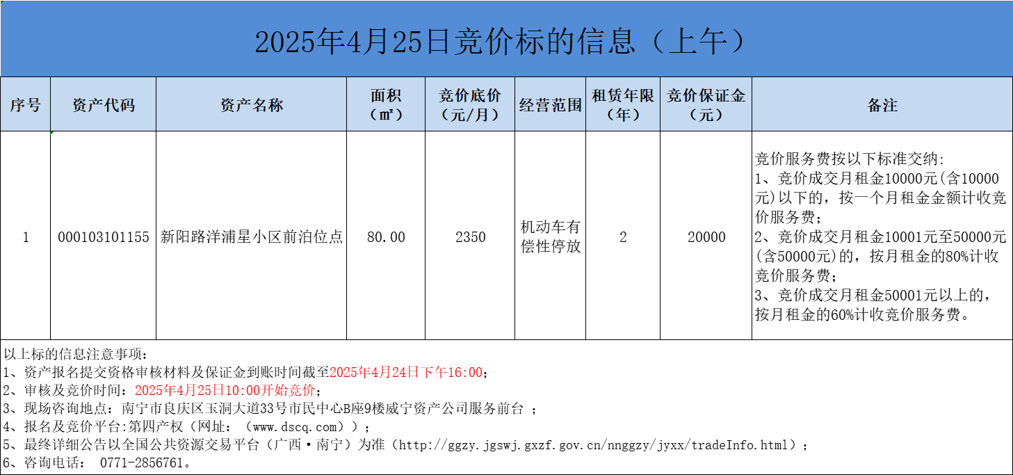 2025年4月25日竞价标的信息(线上竞价)