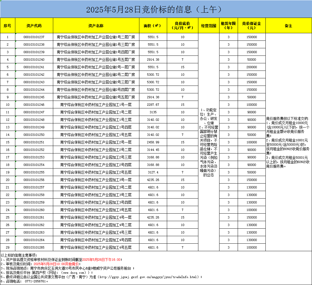 2025年5月28日竞价标的信息(线上竞价)