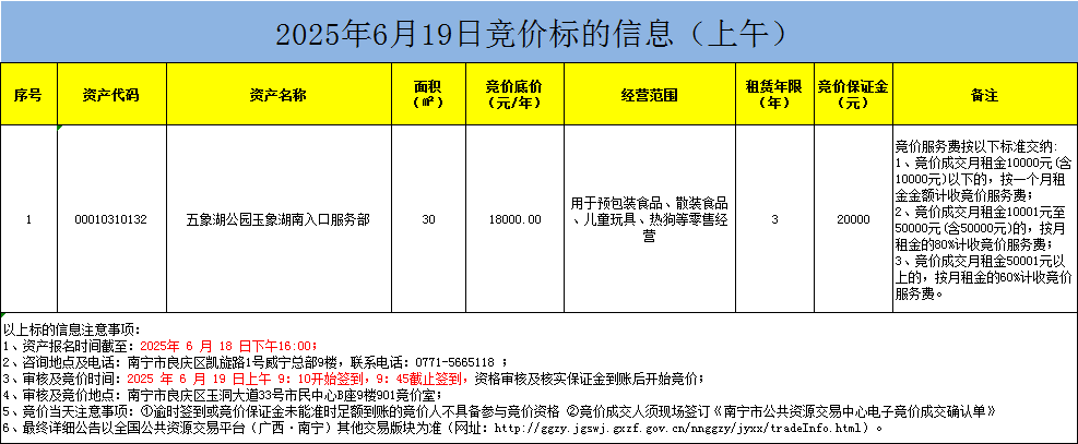 2025年6月19日竞价标的信息(现场竞价)